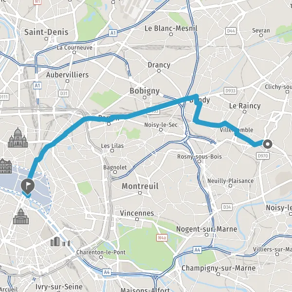 Prendre à droite la piste cyclable Piste cyclable de l'Ourcq et continuer sur 4,8 kilomètres