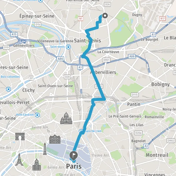 Prendre à droite la piste cyclable Rue d'Aubervilliers et continuer sur 1,7 kilomètre