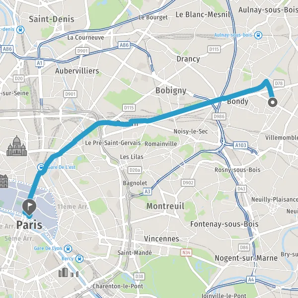 Au rond-point, prendre la 2ème sortie Rue du Faubourg Saint-Martin et continuer sur 130 mètres