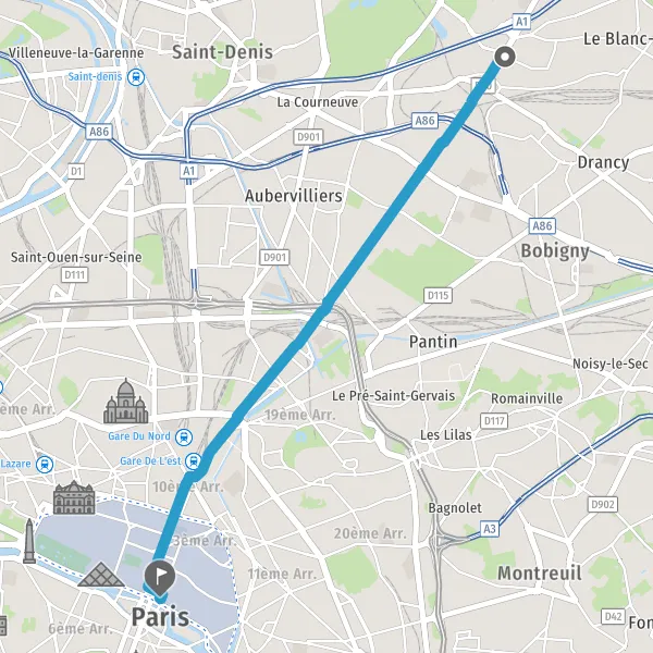 Prendre à droite Rue du Faubourg Saint-Martin et continuer sur 1,1 kilomètre