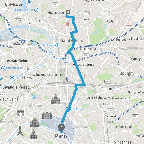 Prendre à droite la piste cyclable Rue d'Aubervilliers et continuer sur 1,7 kilomètre