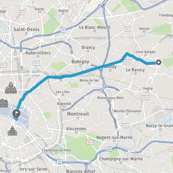 Prendre à droite la piste cyclable Piste cyclable de l'Ourcq et continuer sur 4,8 kilomètres