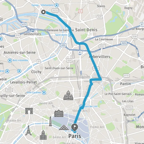 Prendre à droite la piste cyclable Rue d'Aubervilliers et continuer sur 1,7 kilomètre