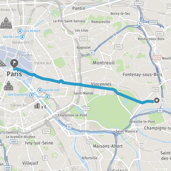 Prendre légèrement à droite la piste cyclable Avenue de Nogent et continuer sur 2,3 kilomètres