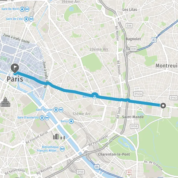 Prendre à droite la piste cyclable Cours de Vincennes et continuer sur 1,0 kilomètre