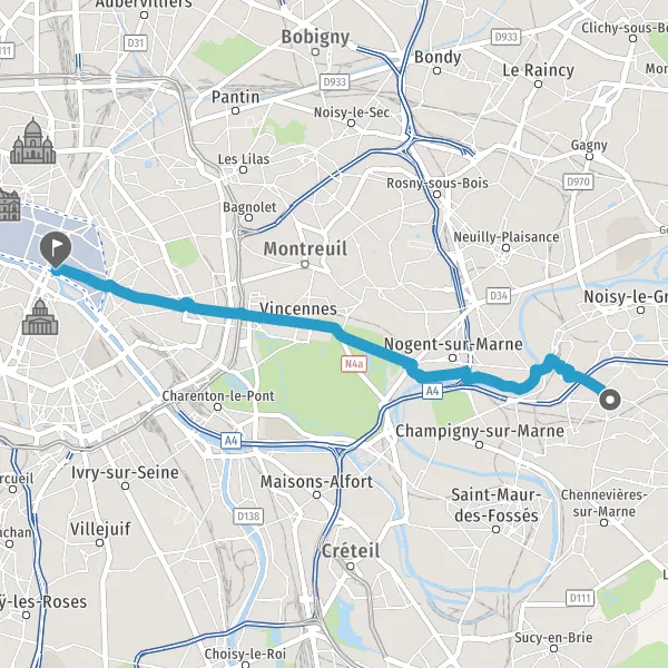 Prendre légèrement à droite la piste cyclable Avenue de Nogent et continuer sur 2,3 kilomètres