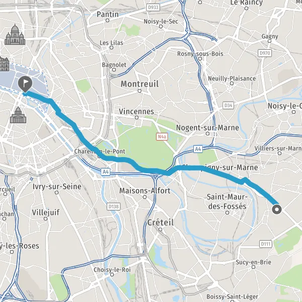 Prendre légèrement à gauche la voie partagée Rue de Charenton et continuer sur 700 mètres