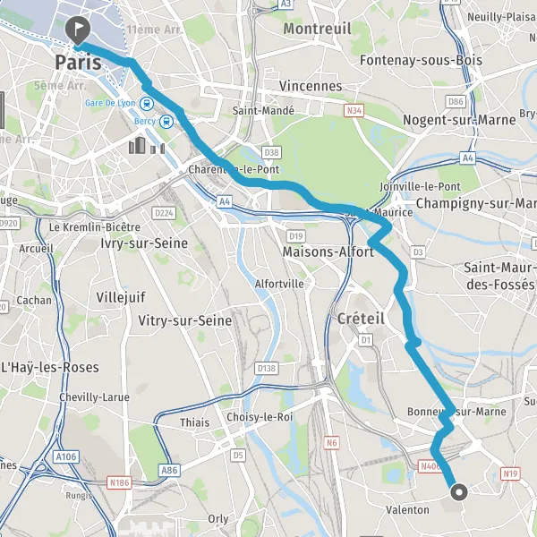 Prendre à gauche la piste cyclable Avenue de Gravelle et continuer sur 1,9 kilomètre