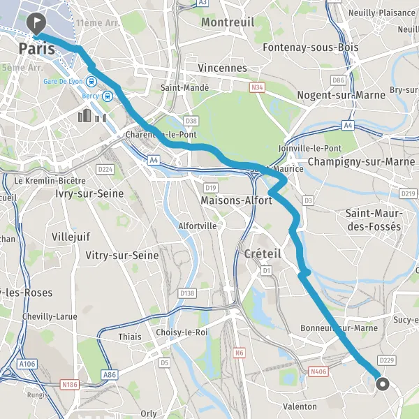 Prendre à gauche la piste cyclable Avenue de Gravelle et continuer sur 1,9 kilomètre