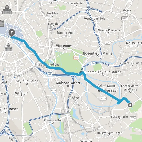 Prendre à gauche la piste cyclable Avenue de Gravelle et continuer sur 1,9 kilomètre