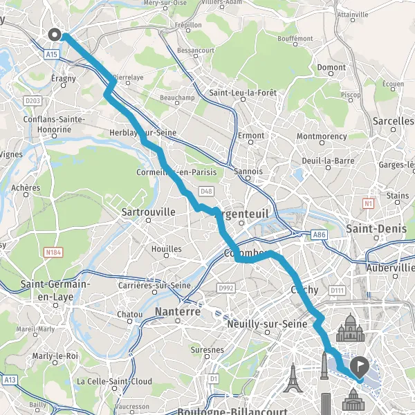 Prendre légèrement à droite Route de Pierrelaye et continuer sur 850 mètres