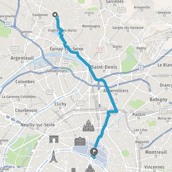 Prendre à droite la piste cyclable Rue d'Aubervilliers et continuer sur 1,7 kilomètre