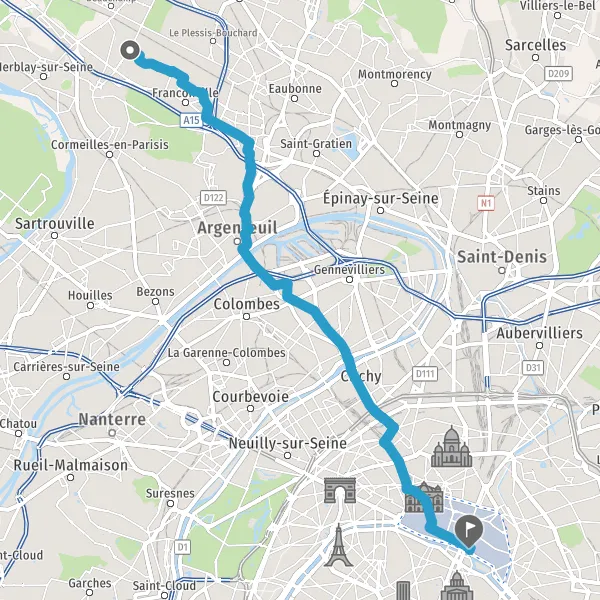 Au rond-point, prendre la 3ème sortie la piste cyclable Rue d'Argenteuil et continuer sur 160 mètres