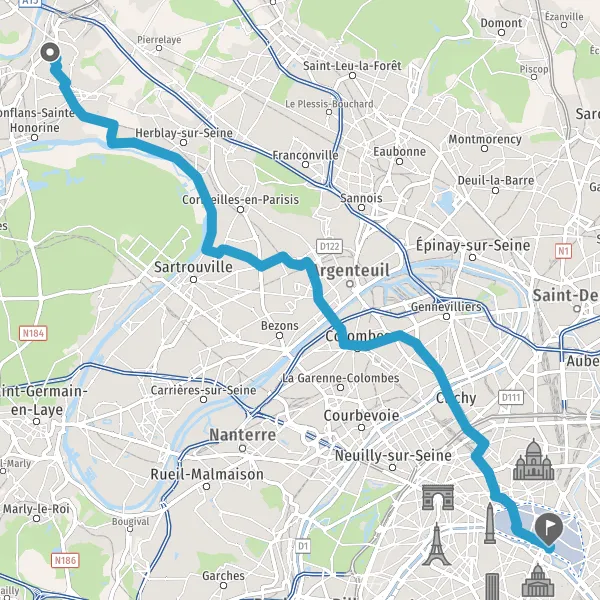 Prendre à droite Quai de la Seine et continuer sur 2,7 kilomètres