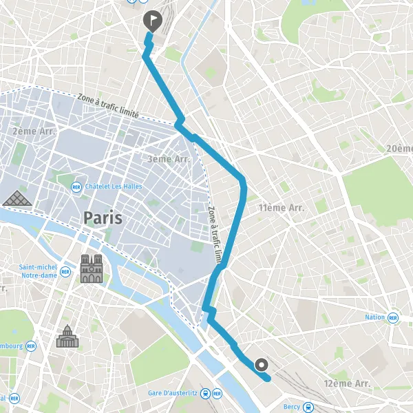 | Distance à vélo | 4,5 km à 5,1 km |