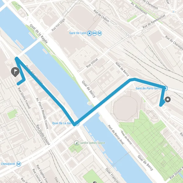 | Distance à vélo | 1,2 km à 1,6 km |
