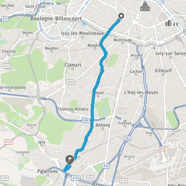 Prendre légèrement à droite la piste cyclable Rue Vercingétorix et continuer sur 500 mètres