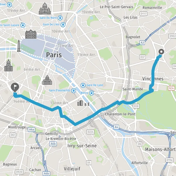 Prendre à gauche Rue de Vincennes et continuer sur 1,6 kilomètre