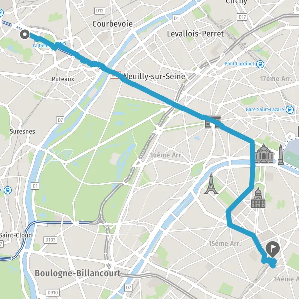 Prendre à droite la piste cyclable Avenue Franklin Delano Roosevelt et continuer sur 1,3 kilomètre