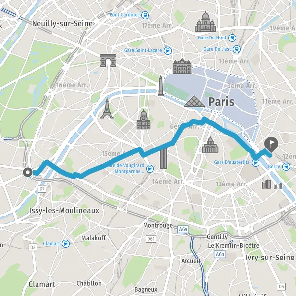 Prendre à gauche la piste cyclable Rue de Vaugirard et continuer sur 1,2 kilomètre
