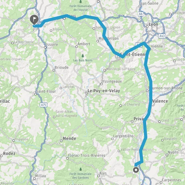 Prendre à droite et rejoindre A72. Continuer sur 53 kilomètres