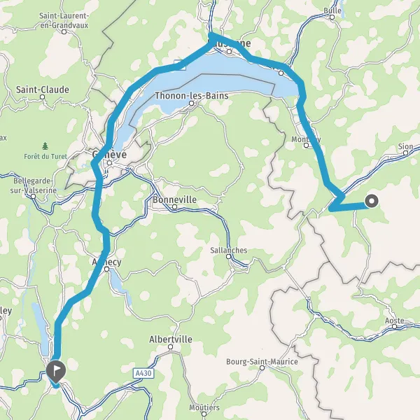 Au rond-point, prendre la 2ème sortie sur 21 E27 (Route du Grand-Saint-Bernard) et continuer sur 8,7 kilomètres