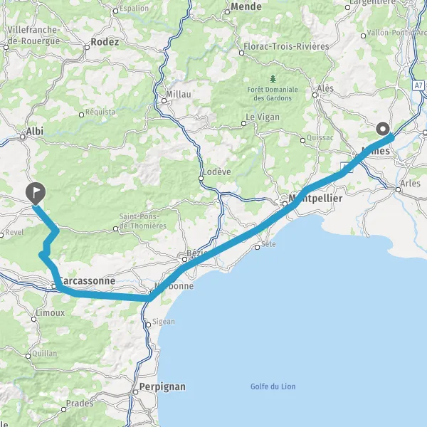 Au rond-point, prendre la 2ème sortie sur D118 (Avenue de la Montagne Noire) et continuer sur 36 kilomètres