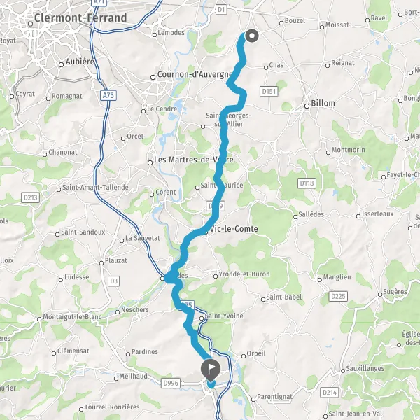 Tourner légèrement à droite sur D229 (Route de Vic-le-Comte) et continuer sur 2,7 kilomètres