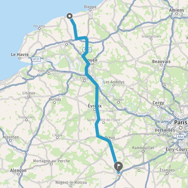 Prendre à droite et rejoindre A154. Continuer sur 28 kilomètres