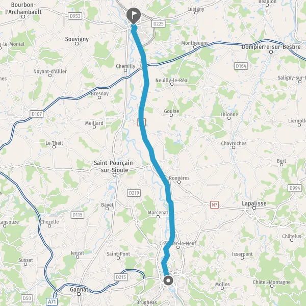 N7A71MontluçonMoulinsBourgesSaint-LoupNeuilly-le-RéalSaint-Pourçain-sur-Sioule
