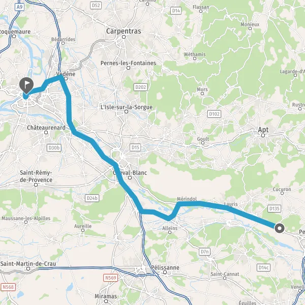 Au rond-point, prendre la 3ème sortie sur D973 (Route de Cavaillon) et continuer sur 5,4 kilomètres