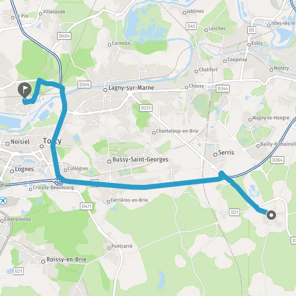 | Distance en voiture | 18,4 km à 22,0 km |