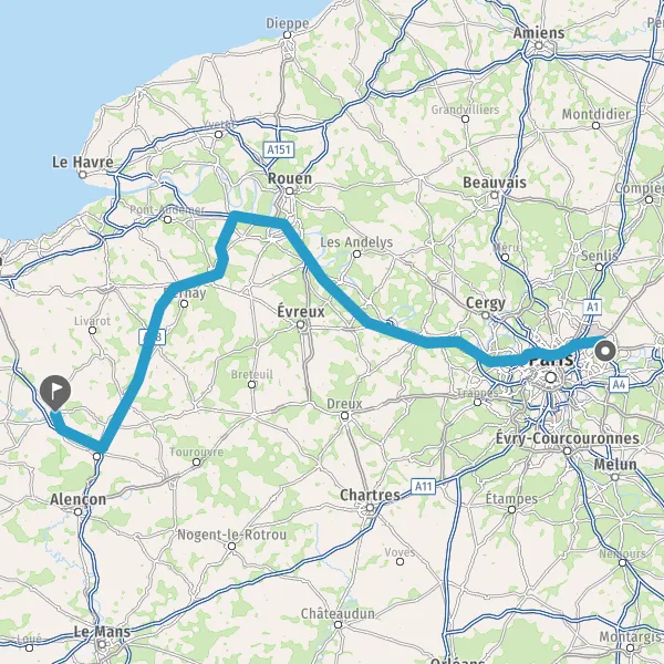 Prendre à gauche et rejoindre A13 E5. Continuer sur 87 kilomètres