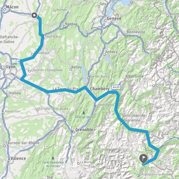 Prendre à droite et rejoindre A43 E70. Continuer sur 65 kilomètres