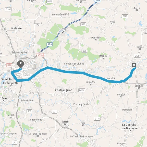 Tourner légèrement à droite sur D857 (Rue de Vitré) et continuer sur 500 mètres