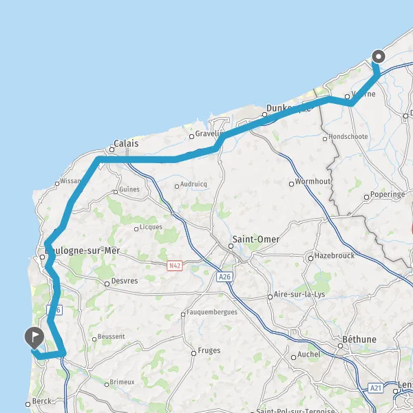 Au rond-point, prendre la 4ème sortie sur D939 (Rue du Touquet) et continuer sur 600 mètres