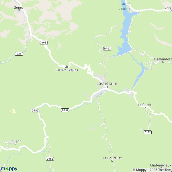 Affichez sur la carte les pistes cyclables pour la ville de Castellane (04120). Les différents aménagements cyclables, comme les voies vertes, les véloroutes et les voies partagées sont pris en compte sur les tracés de carte.
