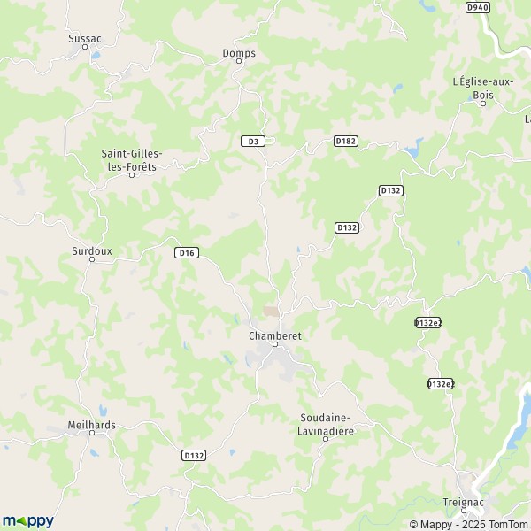 Affichez sur la carte les pistes cyclables pour la ville de Chamberet (19370). Les différents aménagements cyclables, comme les voies vertes, les véloroutes et les voies partagées sont pris en compte sur les tracés de carte.