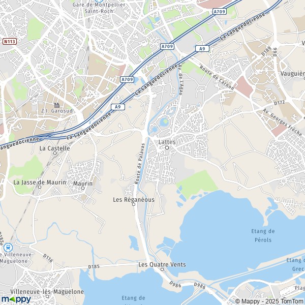 Affichez sur la carte les pistes cyclables pour la ville de Lattes (34970). Les différents aménagements cyclables, comme les voies vertes, les véloroutes et les voies partagées sont pris en compte sur les tracés de carte.
