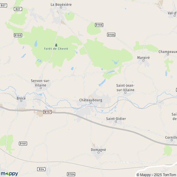Sur la carte vous pouvez aussi afficher : Info trafic Châteaubourg