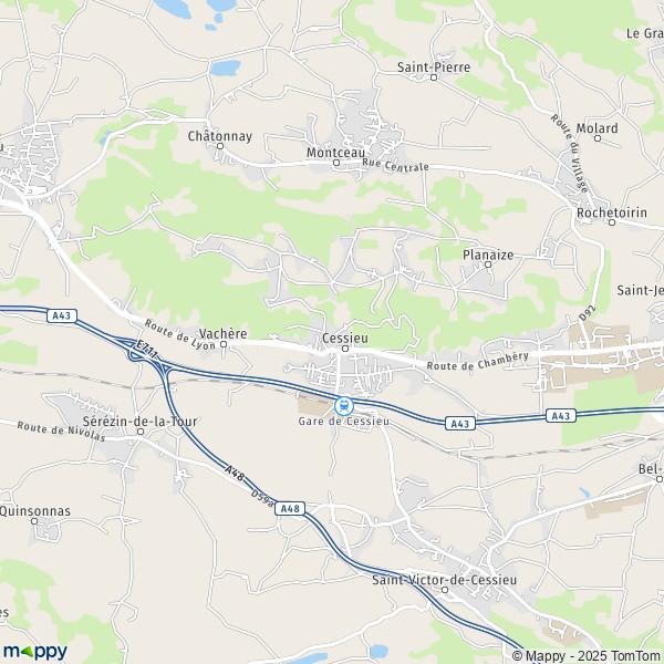 Affichez sur la carte les pistes cyclables pour la ville de Cessieu (38110). Les différents aménagements cyclables, comme les voies vertes, les véloroutes et les voies partagées sont pris en compte sur les tracés de carte.