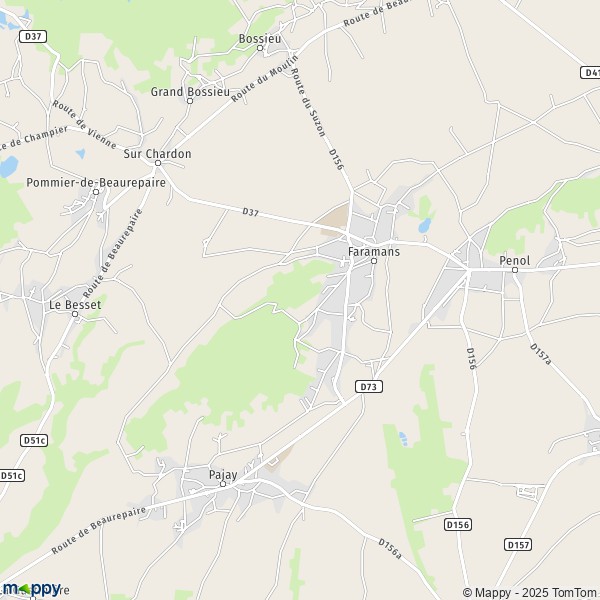Affichez sur la carte les pistes cyclables pour la ville de Faramans (38260). Les différents aménagements cyclables, comme les voies vertes, les véloroutes et les voies partagées sont pris en compte sur les tracés de carte.