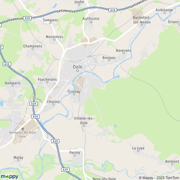 Sur la carte vous pouvez aussi afficher : Info trafic Dole