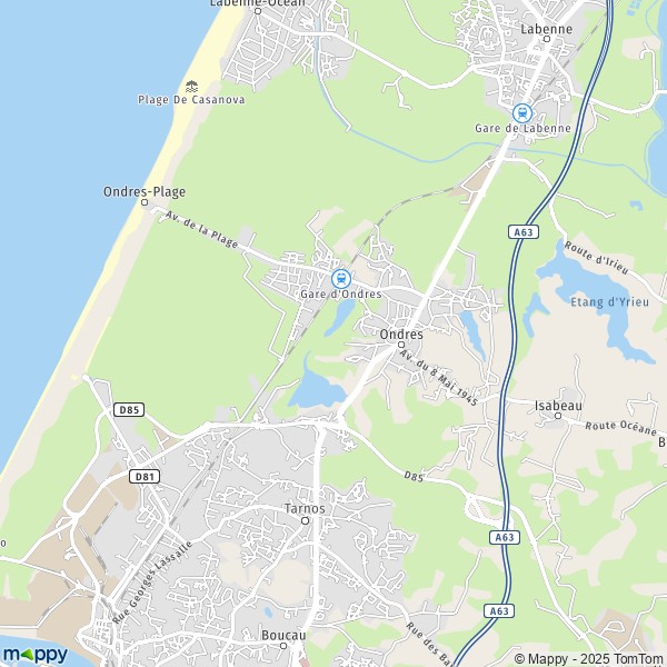 Retrouvez également sur Mappy, les services et les commerçants de Ondres pouvant vous aider à réaliser au mieux votre trajet à vélo