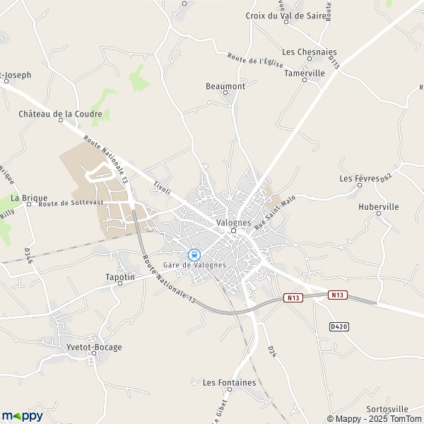Affichez sur la carte les pistes cyclables pour la ville de Valognes (50700). Les différents aménagements cyclables, comme les voies vertes, les véloroutes et les voies partagées sont pris en compte sur les tracés de carte.