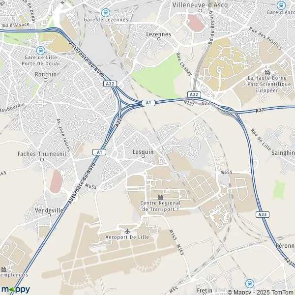 Sur la carte vous pouvez aussi afficher : Info trafic Lesquin