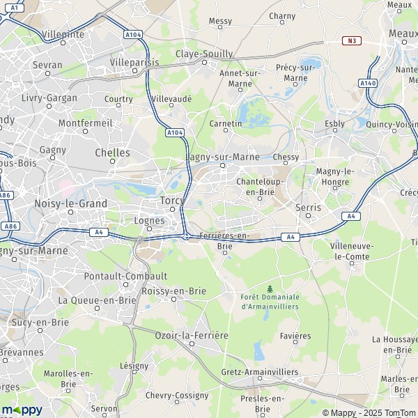 Affichez sur la carte les pistes cyclables pour la ville de Marne-la-Vallée (77090). Les différents aménagements cyclables, comme les voies vertes, les véloroutes et les voies partagées sont pris en compte sur les tracés de carte.