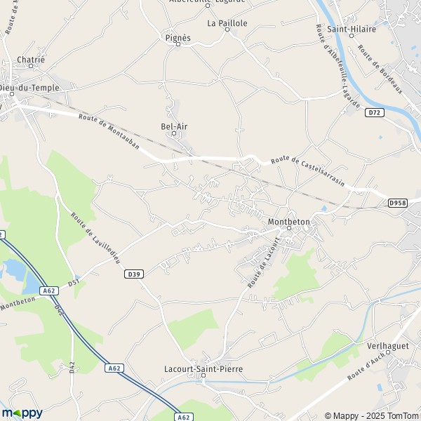Affichez sur la carte les pistes cyclables pour la ville de Montbeton (82290). Les différents aménagements cyclables, comme les voies vertes, les véloroutes et les voies partagées sont pris en compte sur les tracés de carte.