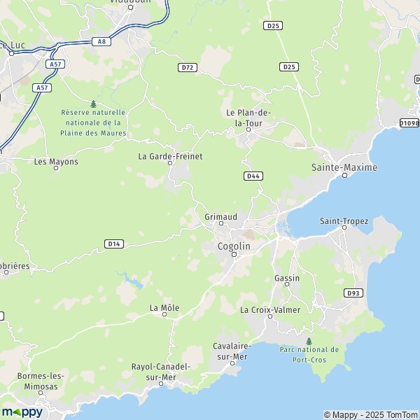 Sur la carte vous pouvez aussi afficher : Info trafic Cogolin