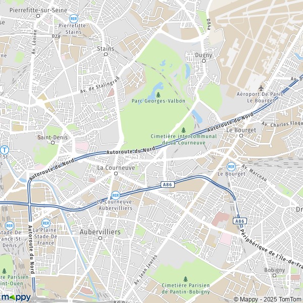 Affichez sur la carte les pistes cyclables pour la ville de La Courneuve (93120). Les différents aménagements cyclables, comme les voies vertes, les véloroutes et les voies partagées sont pris en compte sur les tracés de carte.